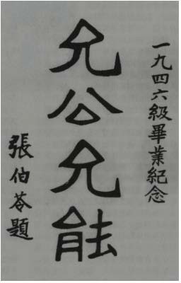 La devise scolaire écrite par Zhang Boling pour les diplômés en 1946.