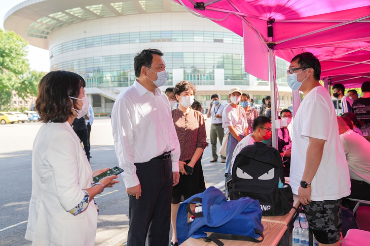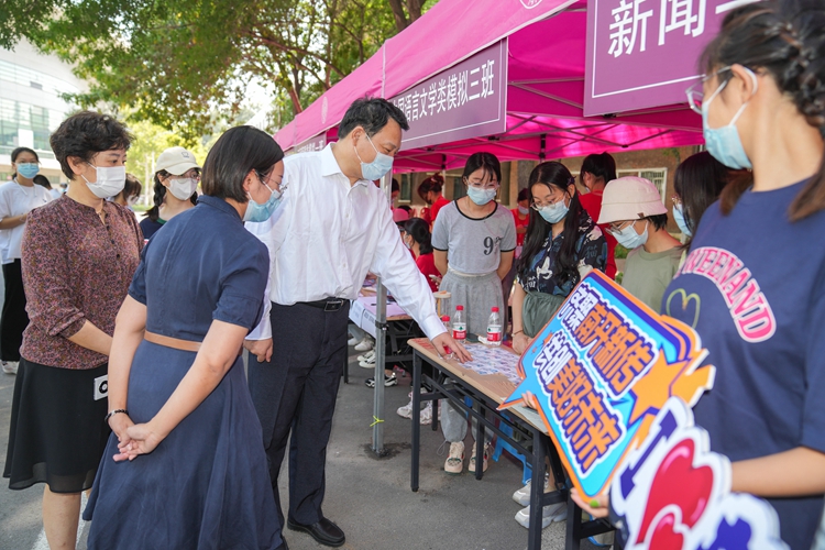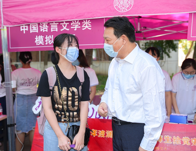 At 10:00 a.m., President Chen Yulu came to the welcome venue at dormitory 20 on Balitai Campus to greet the new students and extend regards to all the staff who areinvolved in the orientation work. Chen Yulu inquired about the welcome work and ho ped that all departments and schools provide intimate services for new students, so that students feel that "Nankai University is a home away from home".