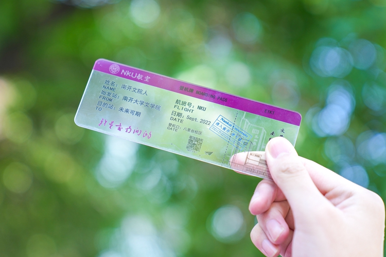 The School of Literature prepared acrylic boarding passes for new students, hoping that everyone aboard the "NKU" flight pursues their dream, and successfully arrives at the destination “with a promising future”.