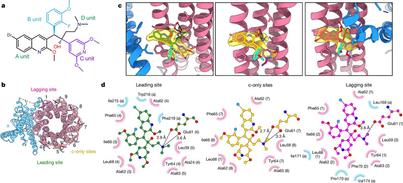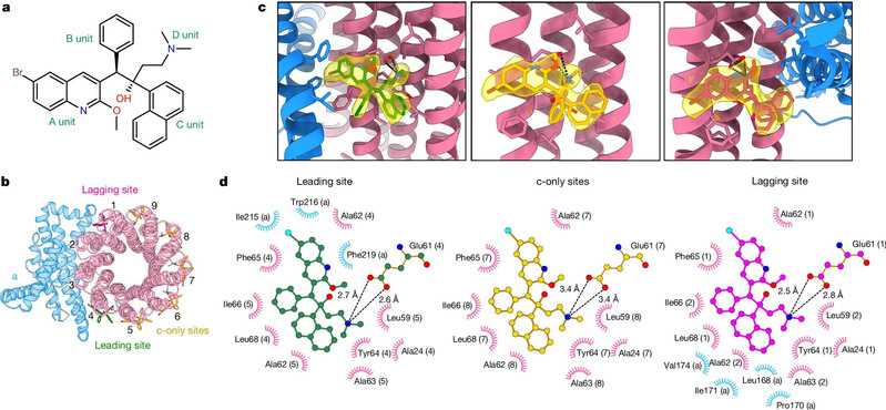 L'équipe de recherche a ensuite recherché pour optimiser les conditions de préparation des échantillons congelés et a analysé avec succès la structure cryoscopique à haute résolution de l'ATP synthase de M. Tuberculosis à l'état lié à la bédaquiline à l'aide de la technique de cryoscopie à grain unique (illustrée sur la figure 1). Il est constaté que la bédaquiline interagit fortement avec l'ATP synthase de M. Tuberculosis et se lie à plusieurs sites dans la région transmembranaire, principalement par l'intermédiaire du Groupe quinoléine (Groupe A) et du Groupe diméthylamino (Groupe D), empêchant la rotation de l'ATP synthase à travers le cycle C de la région transmembranaire, bloquant ainsi le transport des protons et finalement la synthèse de l'ATP dans le but de affamer M. Tuberculosis.