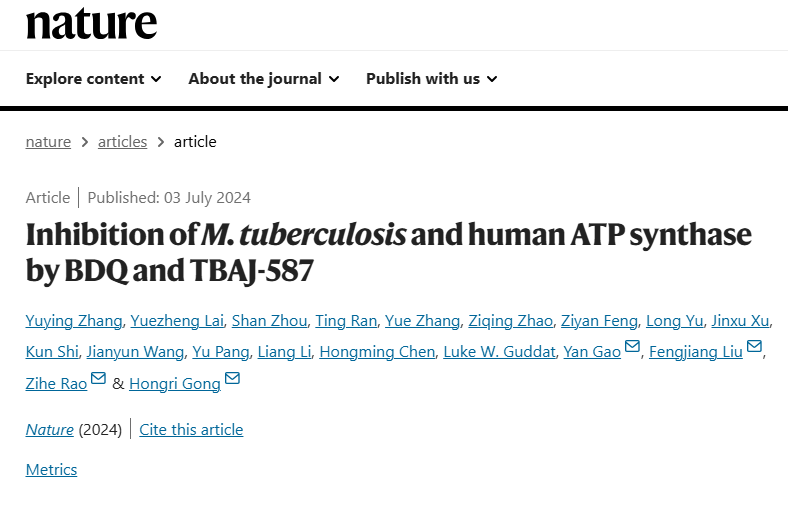 Nankai Nouvelles ( par Cong Min, Li Mengchu, Yang Zhe, photographe Zong Qiqi) Récemment, Nature, l’une des meilleures revues académiques internationales, a publié en ligne les dernières recherches du professeur Gong Hongri, et de l’académicien Rao Zihe de la faculté des sciences de la vie de l'Université Nankai et de leurs collaborateurs. L'étude illustre le mécanisme moléculaire par lequel la bédaquiline (BDQ) et son dérivé TBAJ-587 inhibent la synthétase de l'ATP de Mycobacterium tuberculosis, tout en révélant un mécanisme de réaction croisée entre la BDQ et son dérivé avec la synthétase de l'ATP d'origine humaine, ce qui a des implications importantes pour le développement d'une nouvelle génération de médicaments antituberculeux hautement sélectifs.